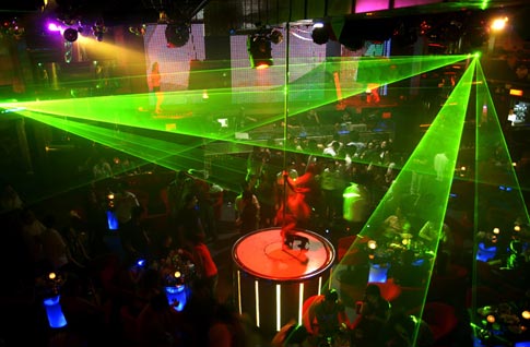 已是凌晨1点钟,却是夜猫子一族开心时。DJ音乐的震撼一浪高过一浪,舞池中的疯狂已趋近高潮,DJ柜台上男女搂抱一团,分不清谁是谁,二楼包厢里,醉意醺醺的人们斜靠在沙发上睡着了。服务生殷勤地倒满了酒,桌上地上一片狼藉。